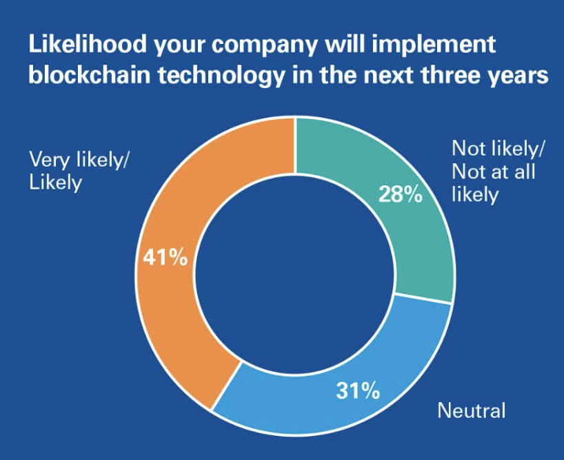 KPMG recently released their ‘2019 Technology Industry Innovation’ survey — with results favorable towards the adoption of blockchain for business. The survey is compiled of results from more than 740 global leaders in the technology industry across 12 countries, with 76% of respondents C-level executives. Some of the key finding include: