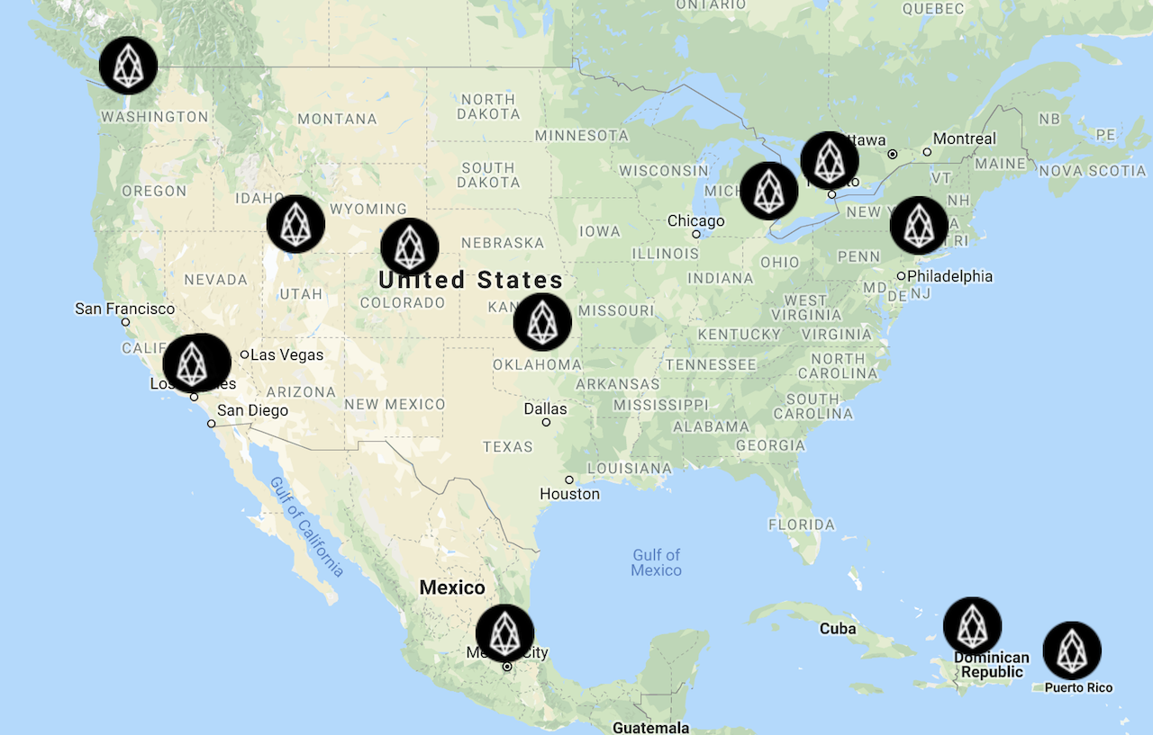 When the network goes live, the Block Producer elections will begin. The goal is for Block Producers to be located all around the world, so that no government or central organization would be able to shut down enough of them at a given time to interrupt the network. Although some of these candidates may have physical servers that reside elsewhere, they have team members based in the Southern California, New York, and Puerto Rico.