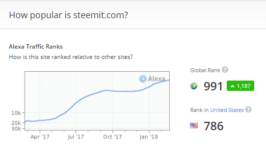 Steemit.com – February 2018 Alexa Traffic Ranks