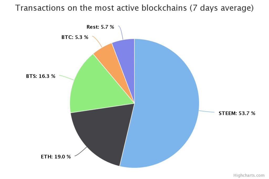 Steem is a zero fee, near instant settlement blockchain and has been “battle-tested” for almost two years. Based on recent data compiled by Blocktivity, Steem blockchain transactions comprise a majority of the total network transactions across the most active blockchains. This represents a 53.7% market share, which is nearly three times larger than that of Ethereum. This is despite naysayers who argued against Blockchain use cases and highlighted scalability concerns (sorry CryptoKitties).